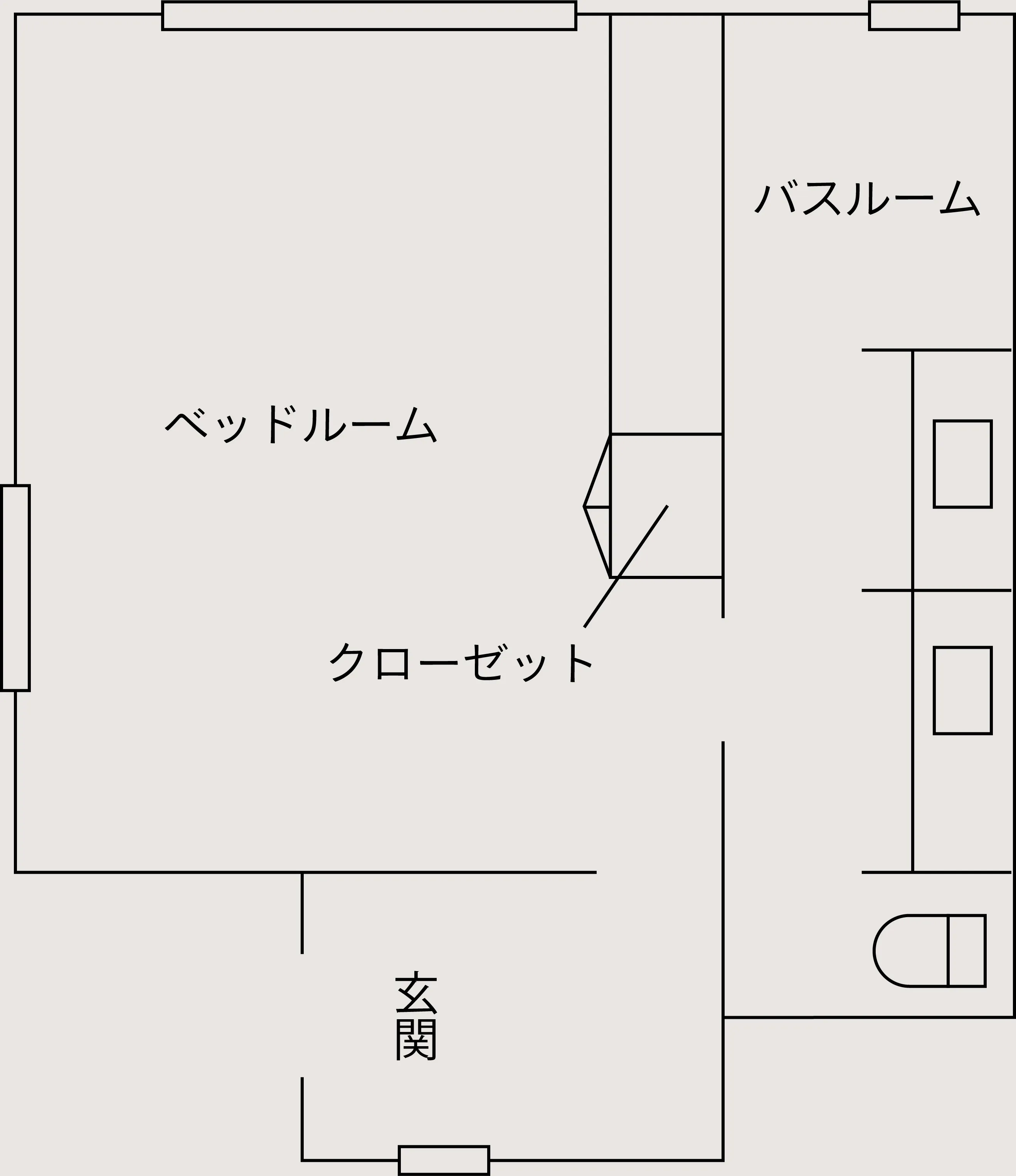ベッドルームとリビングが一つになったワンルームタイプのお部屋です。